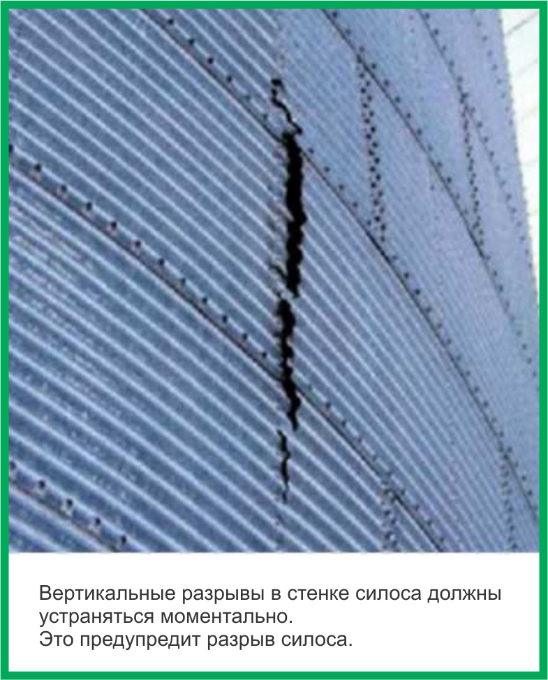 - Раздутие стенок силоса